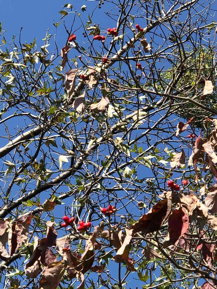 今日は秋晴れ、散歩に行った植物園では、ハナミズキの赤い実🔴が青空に映えてキレイでした💕