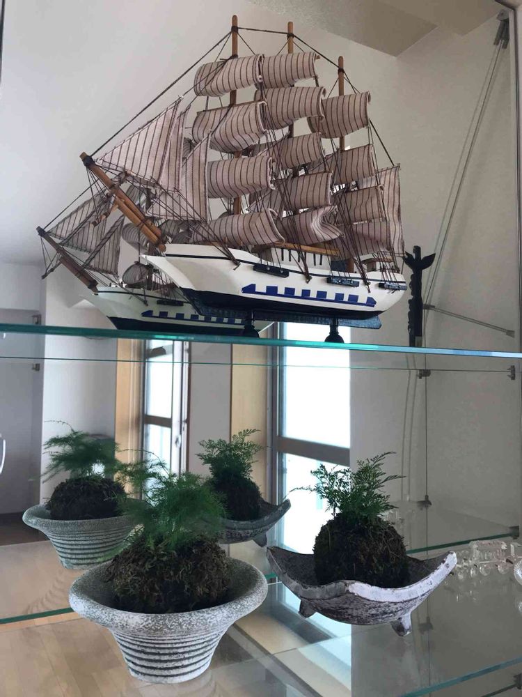 生活感のない部屋に苔玉2つ置きました(^.^)