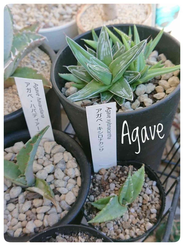 日曜日、初めてウッディKさんというお店に行きました。花や多肉、たくさんの素敵なガーデングッズ等があってとても楽しかったです。そして、他のお店より安かったので、また誘惑に負けてアガベを買ってしまいました。笹の雪とキシロナカンサです。