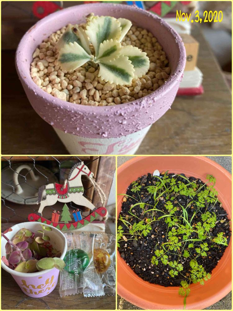 右下も夏にかおりんさんのプレ企画で頂いたオルレアの種を9月の終わりに撒いたら