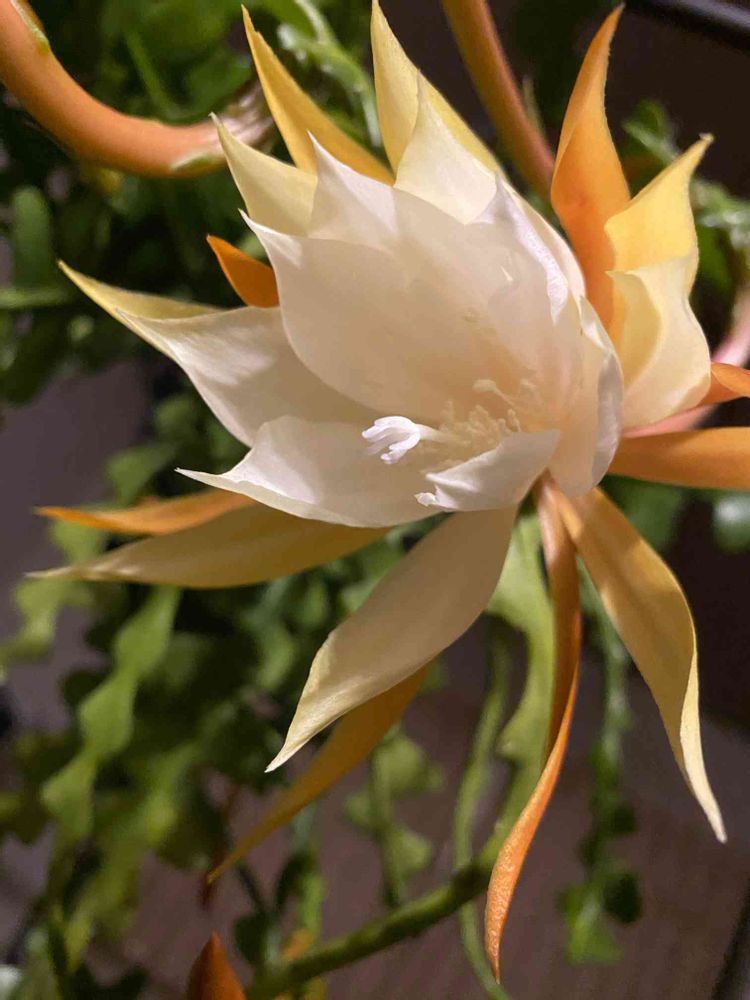 開花開始から1時間後、20時頃のフィッシュボーン ・カクタスです。