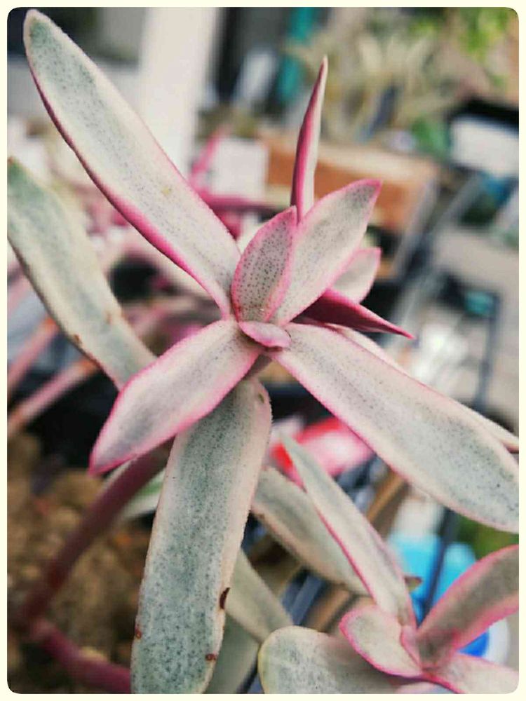 かなり徒長していて茎が長くなってますがかわいい子です💕クラッスラらしい、フンベルティみたいな模様も好きです✨