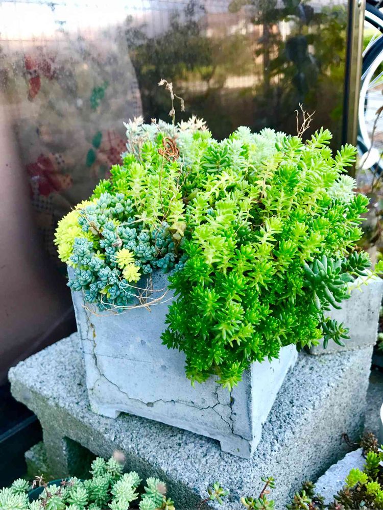 野ざらしセダム鉢があふれています。一時は地植え組に比べて大人しかったのですが、最近もりあがってきました。対して地植え組には花を大量に咲かせた後現在しょぼしょぼになっています。お礼肥をあげた方がよかったのでしょうか?