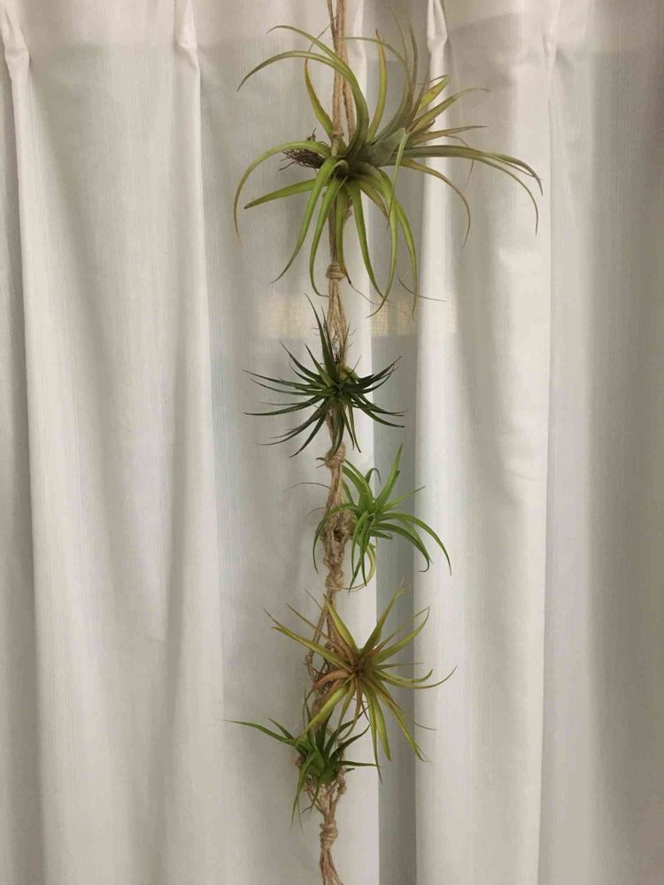 そろそろ寒くなってきたのと、エアプランツにマルカメムシが結構ついてたので💢お家の中に入れました。麻紐でハンギングのやつを即席で作ってみしたが、難しいですね〜。まだまだ大量にエアプランツがいるので、たくさん作らないと、、、