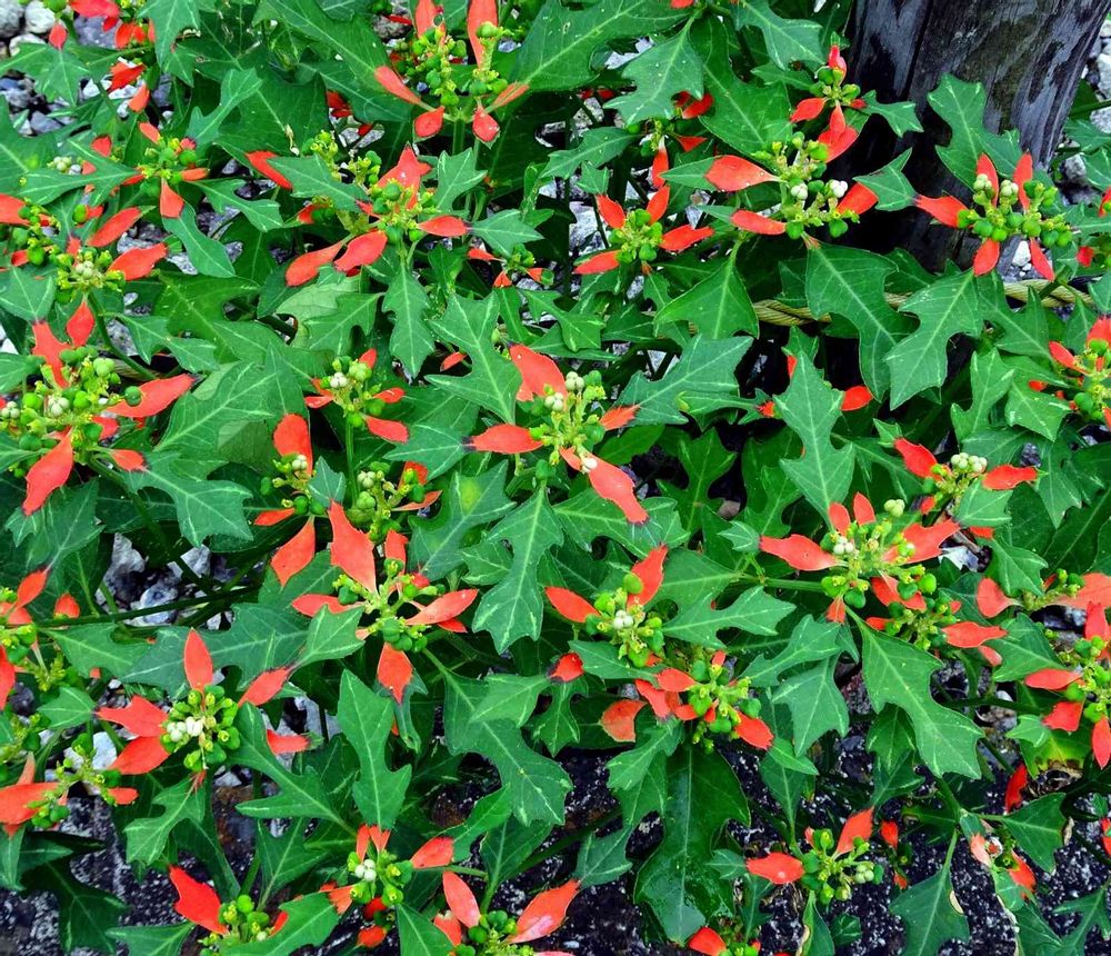 近所の散歩道で見つけました。ポインセチアに似てます。
