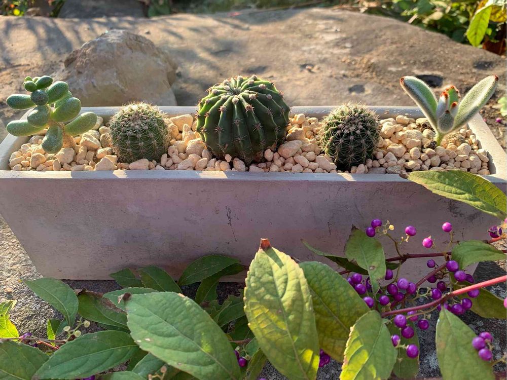 長方形の鉢を頂いたので子株達をポンポンと置いてみました🎶