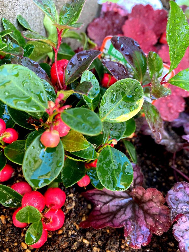 ヒューケラとチェッカーベリーのバランス最高ですね💓