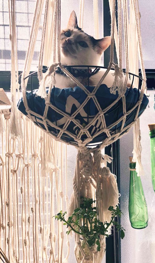 ニャンコか入ってる吊りベットは手作りですか?!