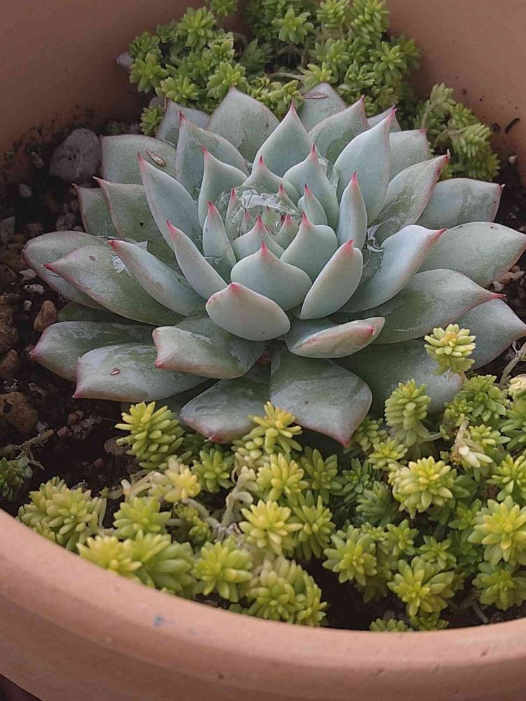 多肉ちゃんとセダムの寄せ植え可愛いですね💕私は寄せ植えにセダムを添えると知らぬまにセダムが消えちゃったりするんです。