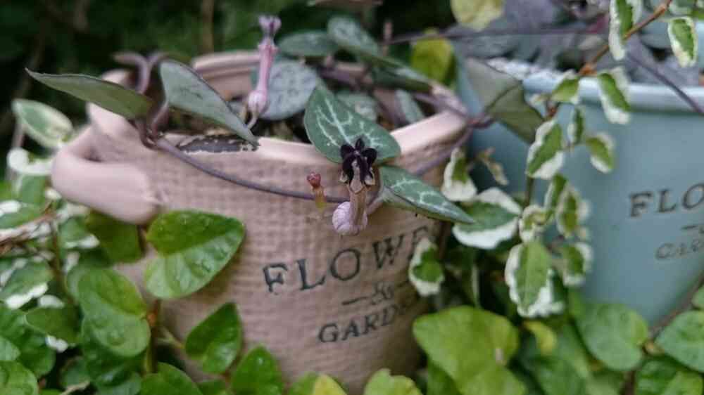 こちらも見切り品ハートカズラ、葉っぱ3枚の瀕死からムカゴ株分けで2鉢にしてここまで復活✨花まで咲かせてくれました〜(*´∇`*)💕