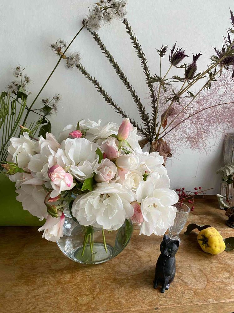 アイスバーグはシンプルだけどこうして玄関に飾っていても皆さんが愛でてくれます。植えて良かった花のひとつですね〜