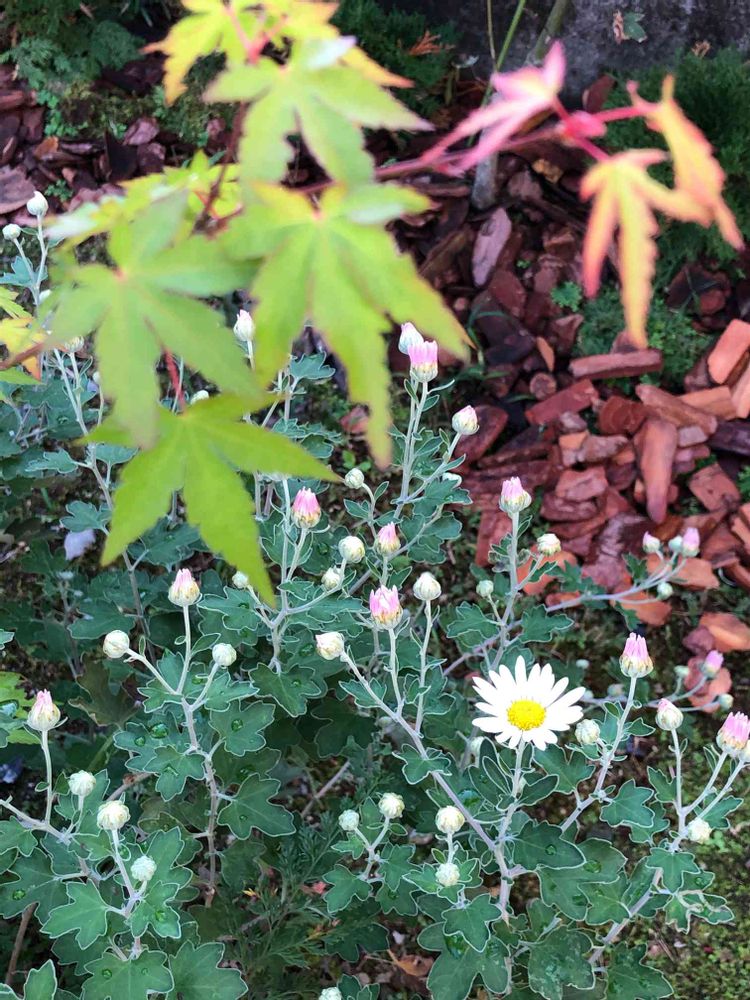 去年春に植えた幼木のモミジが一部だけ、🍁紅葉してました❣️