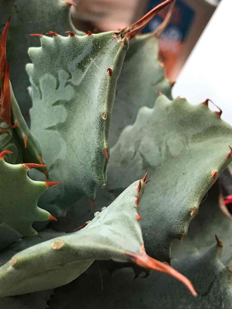 仕事終わって庭の椅子でまったりしつつアガベ様を観察してたら棘同士がチューしてる(o´艸`)❤️