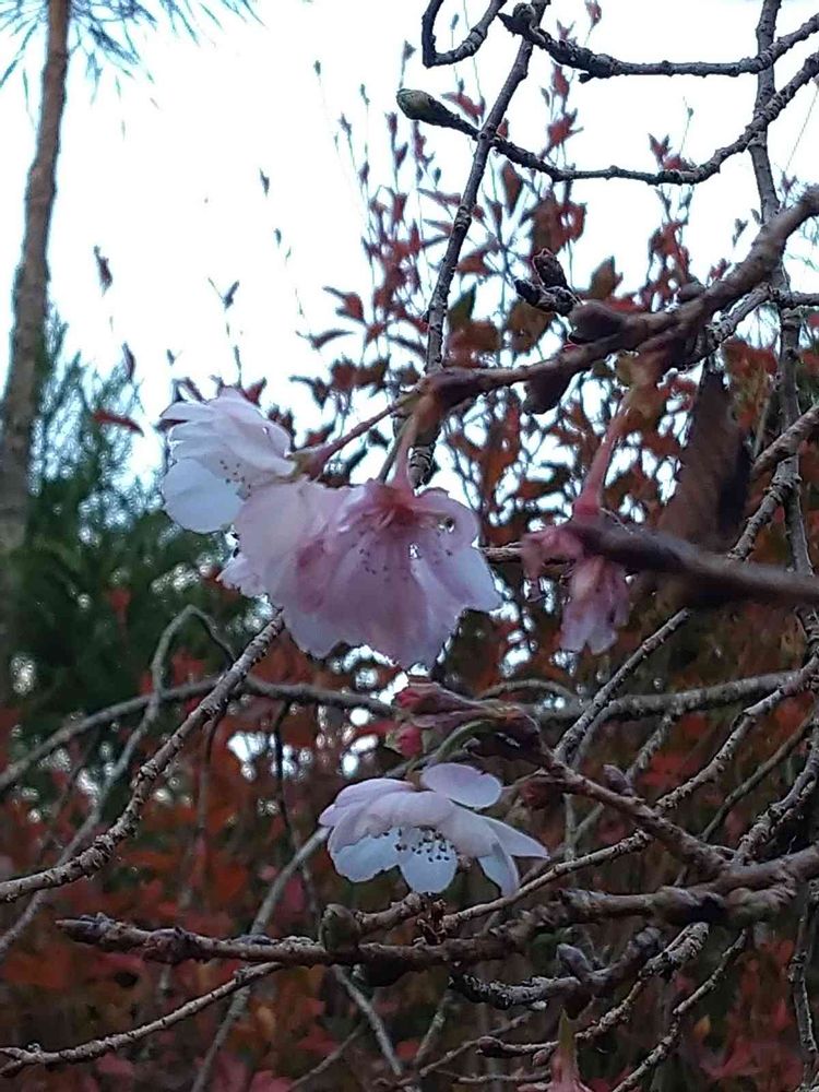 色付きはじめた紅葉と桜が一緒に見られます😊