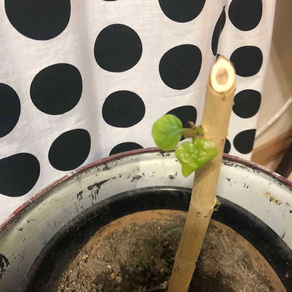 ただの枯れ枝みたいでしたが、ようやく葉っぱ2枚出てきました。