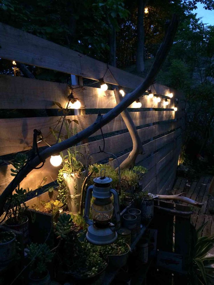 頑張って配線つなげて取付けたガーデンライトがセンサーでポッと点灯💡