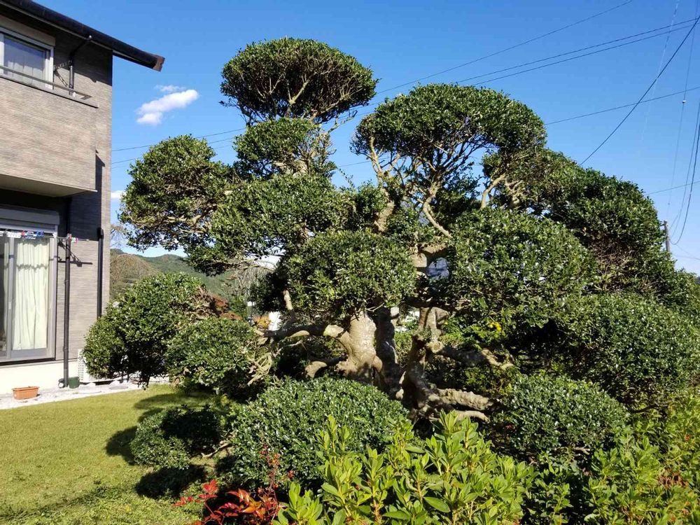 青空の下でいぬ柘植の剪定をしました❗玉散らしが少し上手になった??🙇♂️