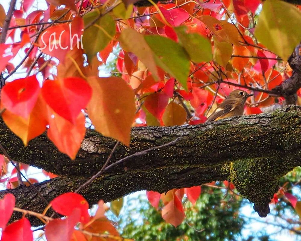 綺麗な紅葉🍁と可愛いジョビ子ちゃん🐦、素晴らしいですね~💕
