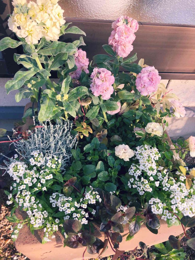 朝陽を浴びる寄せ植え♪
