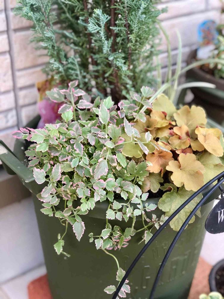 気温が低くなるにつれキレイなピンクになってきたセリ。ヒューケラとのコントラストがお気に入り!