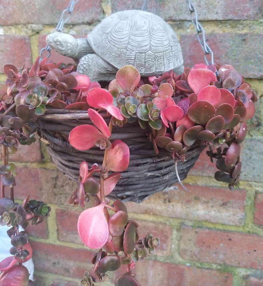 テトちゃん似の亀の置物と黄金丸葉万年草、どちらも長生き、かめも万年❣️