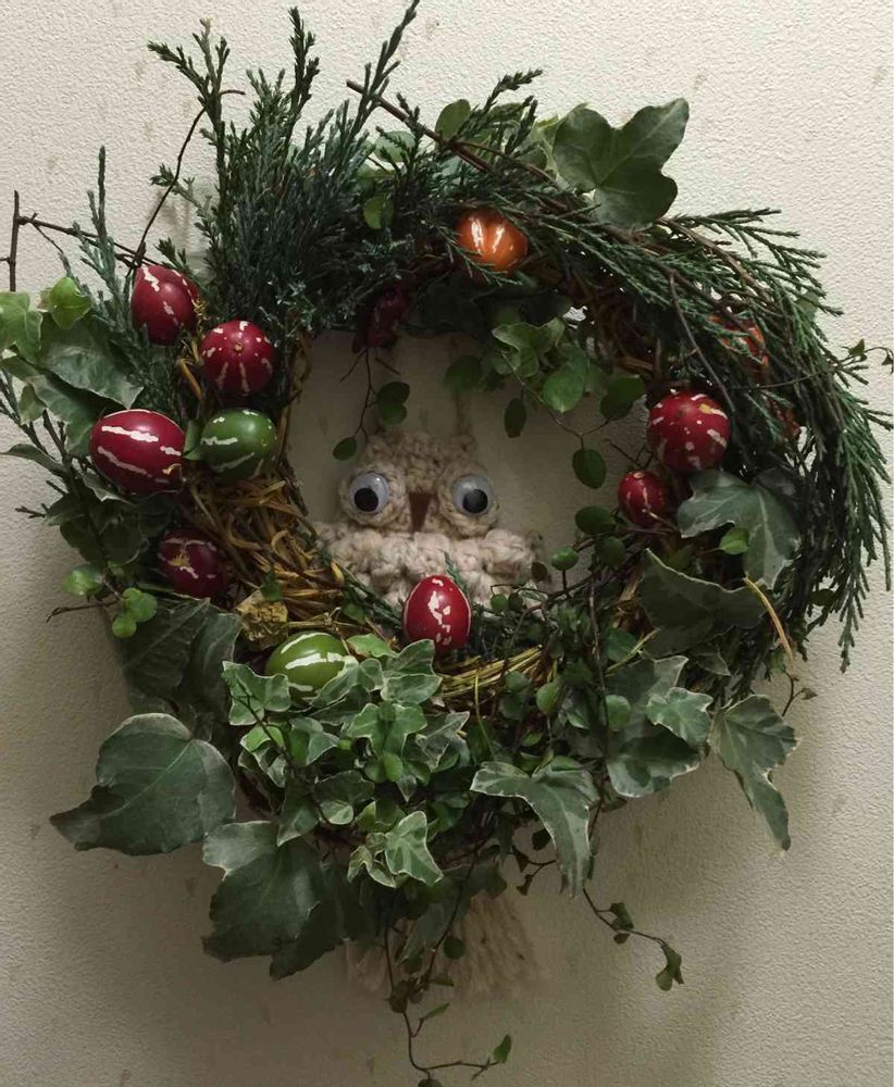 可愛いフクロウ🦉さんと、このリースがとってもマッチしていて素敵ですね💕