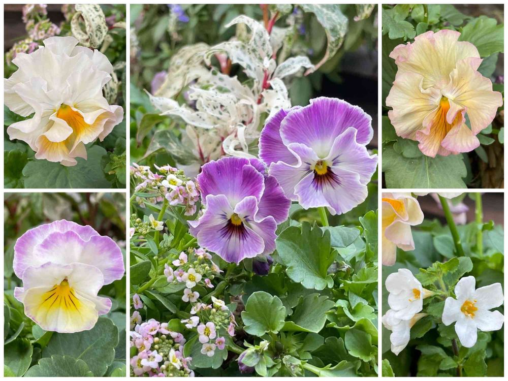 ビオラ、パンジー、アリッサム、ビナンカズラ、バコパを寄せてみました😃