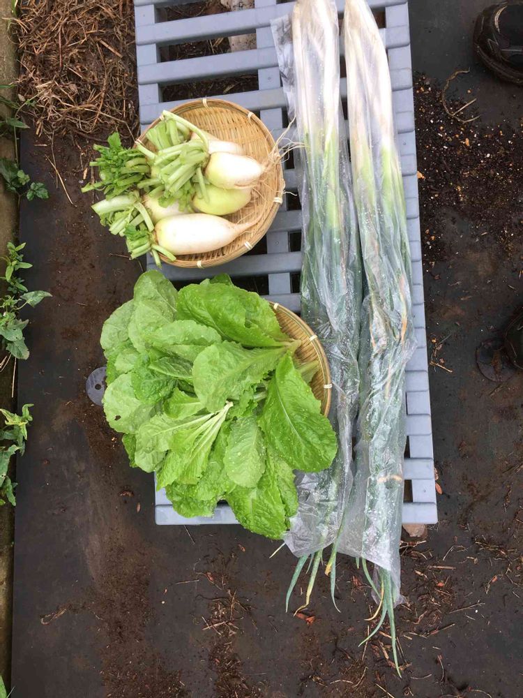 ミニ大根、長ネギ、チマサンチュ。