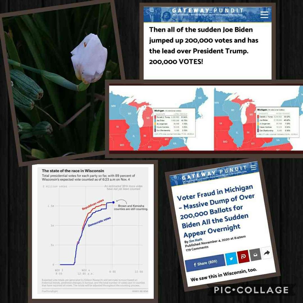 ウィスコンシンのグラフ(左下)をご覧下さい。ウィスコンシンのブラウン郡とケノーシャ郡で開票困難(機械の故障など色々言われています)が続いており、開票率が89%でずっと止まっていますが、朝6時前に開票率89%のままバイデン🐼票が突如として何処からか現れ、🍔🍟を抜きました😵!!。ブラウン郡とケノーシャ郡の開票は未だで、381000票が未開票です。