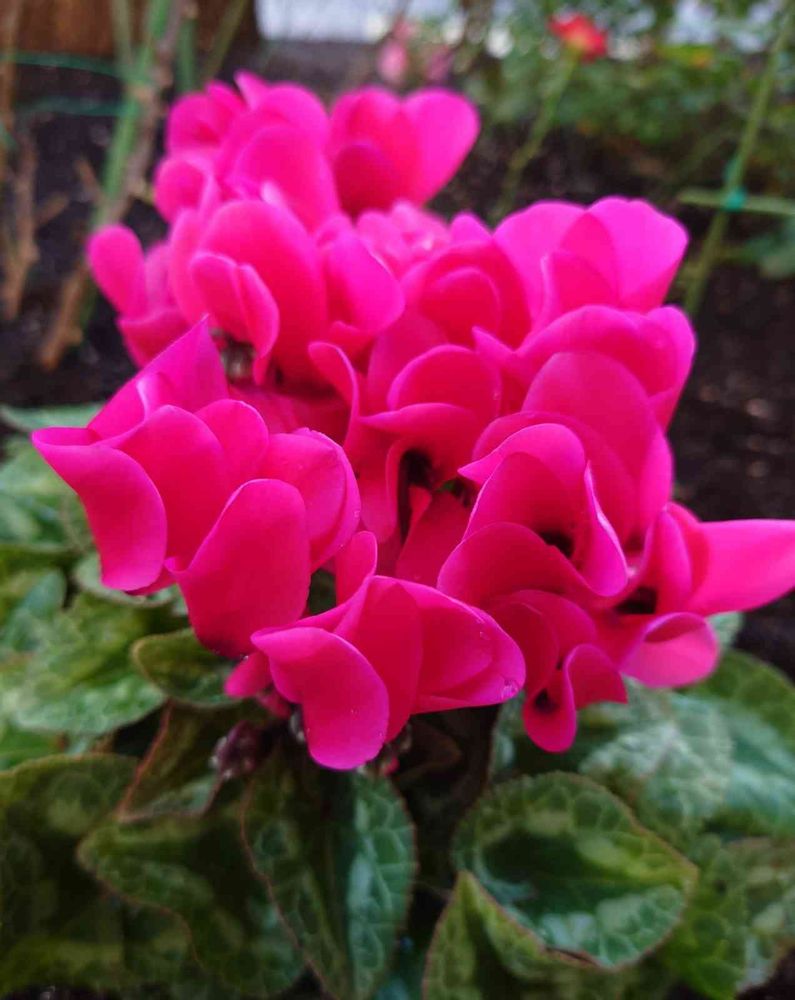 歩道脇花壇ピンクのシクラメンの花、綺麗です💕