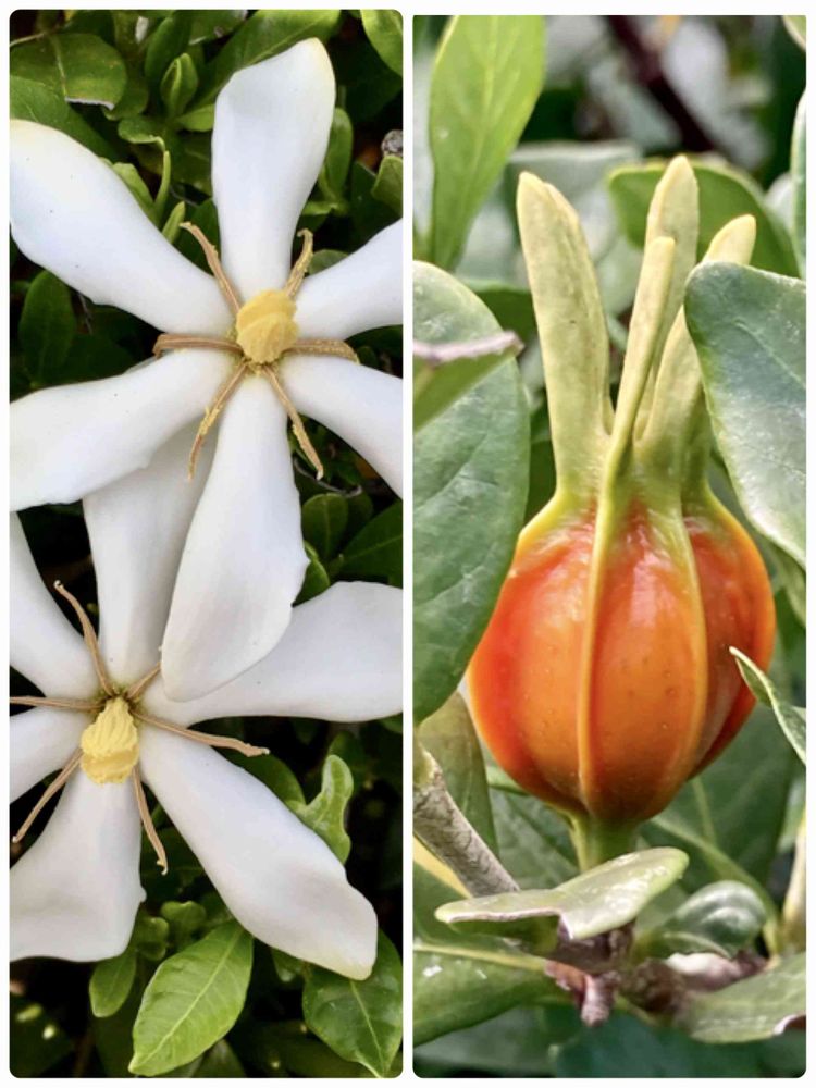 お花は真っ白で美しく、香りは甘く実は可愛いオレンジ🧡…素敵なお花ですね、クチナシ❣️