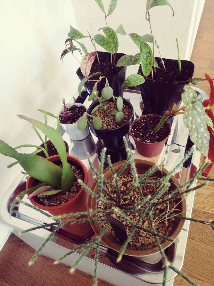 冬支度で室内の植物スペースが拡大したゆえ、この子たちは家族が気に留めない、でも暖かい場所に配置。
