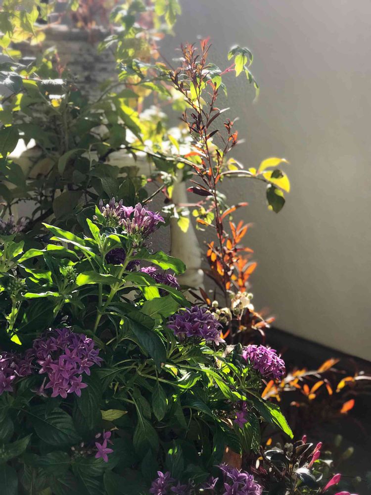 おはようございます^^朝日差す今朝のベランダから…🍀 ペンタスって最強かもです!暑さにも強く今も元気に咲き続けてくれてる٩( ᐛ )و♥️