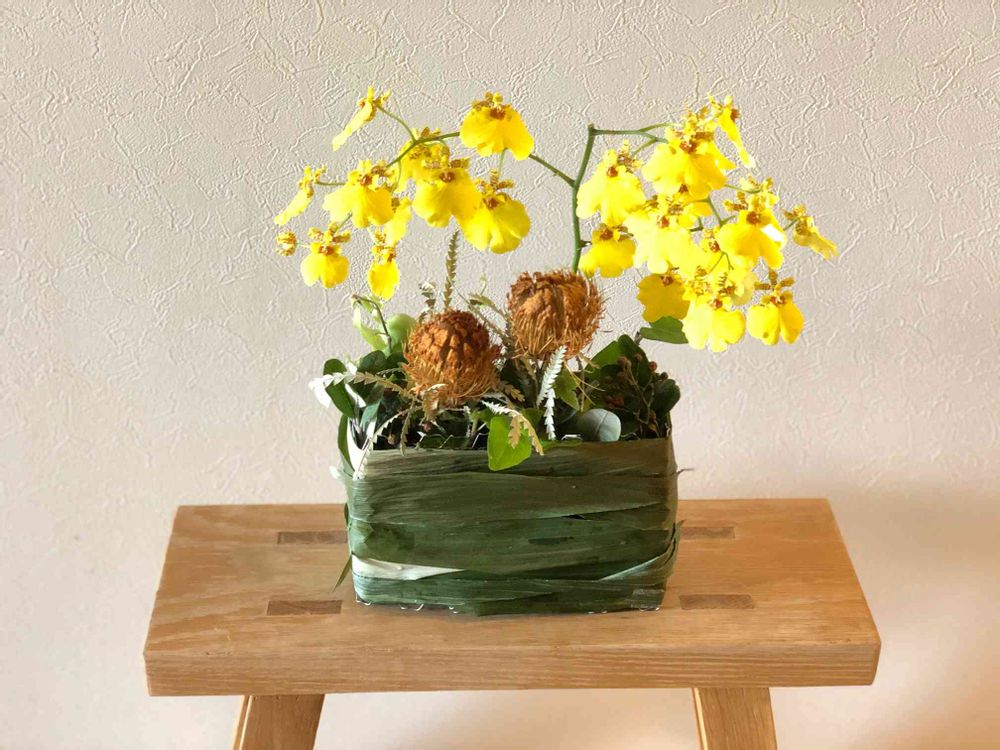 オンシジウムが大きくて半分に切りましたので、もう一つアレンジを作りました💐