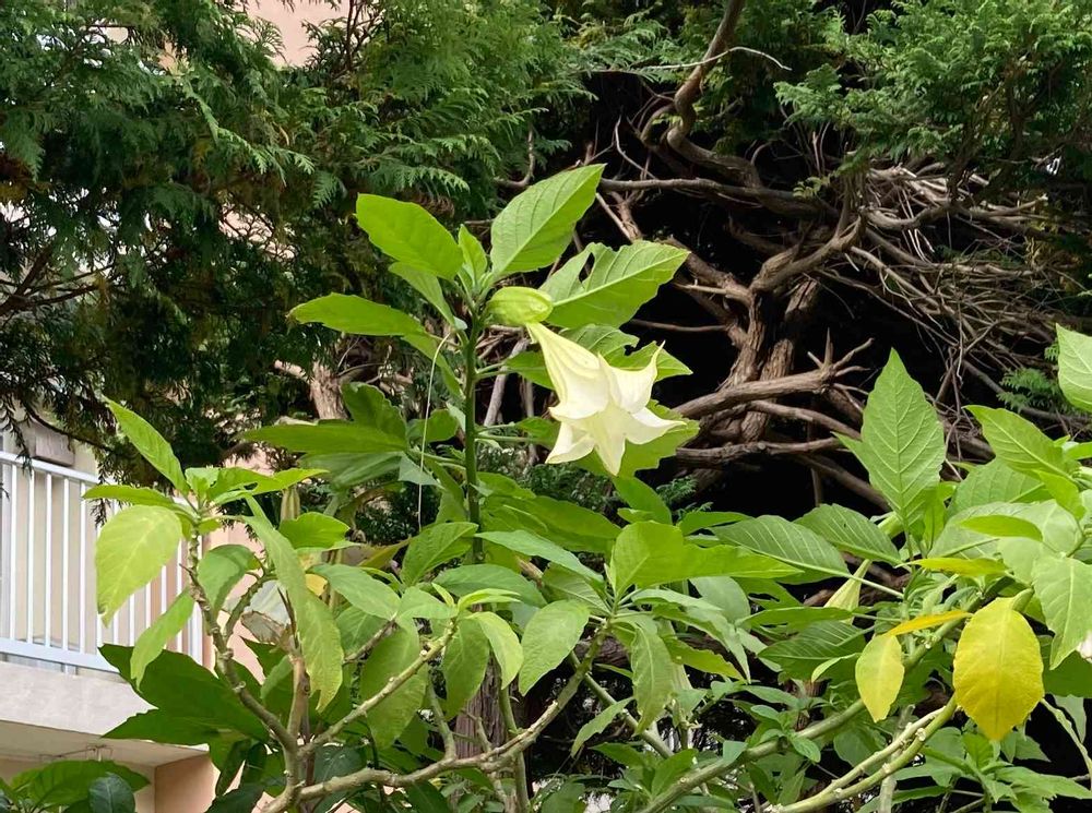 エンゼルトランペットですね。ありがとうございます!天使のラッパと素敵な名前ですが、実は毒性があるとのこと。。エキゾチックですね…
