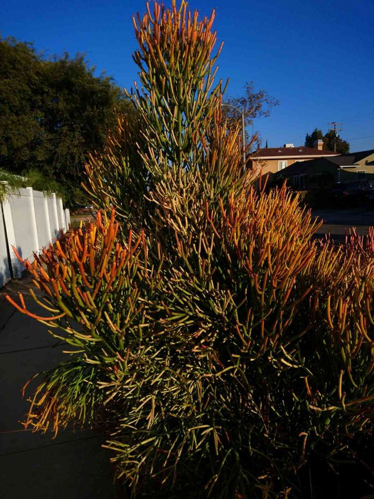 道端のミルクブッシュPencil cactusが紅葉中。