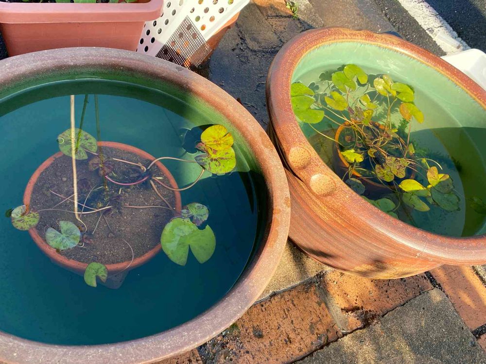 2020.11.02近所の方に大きな鉢を頂いたので睡蓮とメダカの引越しを行いました。メダカもストレスなく泳げるサイズなので良い感じです。睡蓮については沢山葉が枯れてきて冬に向けた準備が進んでます。定期的に間引いて藻を取る作業の繰り返しです。