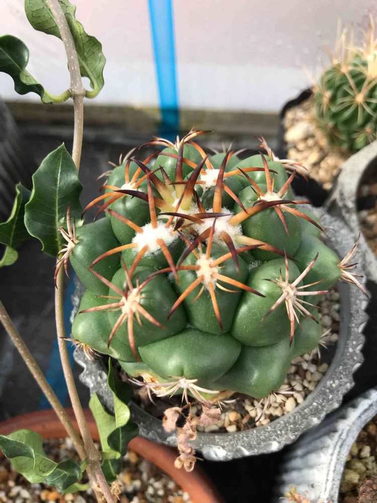 秋も深まりどこか寂しい雰囲気漂うフレームの中で、象牙丸が力強い刺を出していました。寂しいと感じでいたのはわたしだけで、よく見ると皆とても力強く美しく成長していました😂