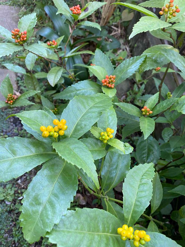 千両、実が黄色い時も可愛いですね❤️