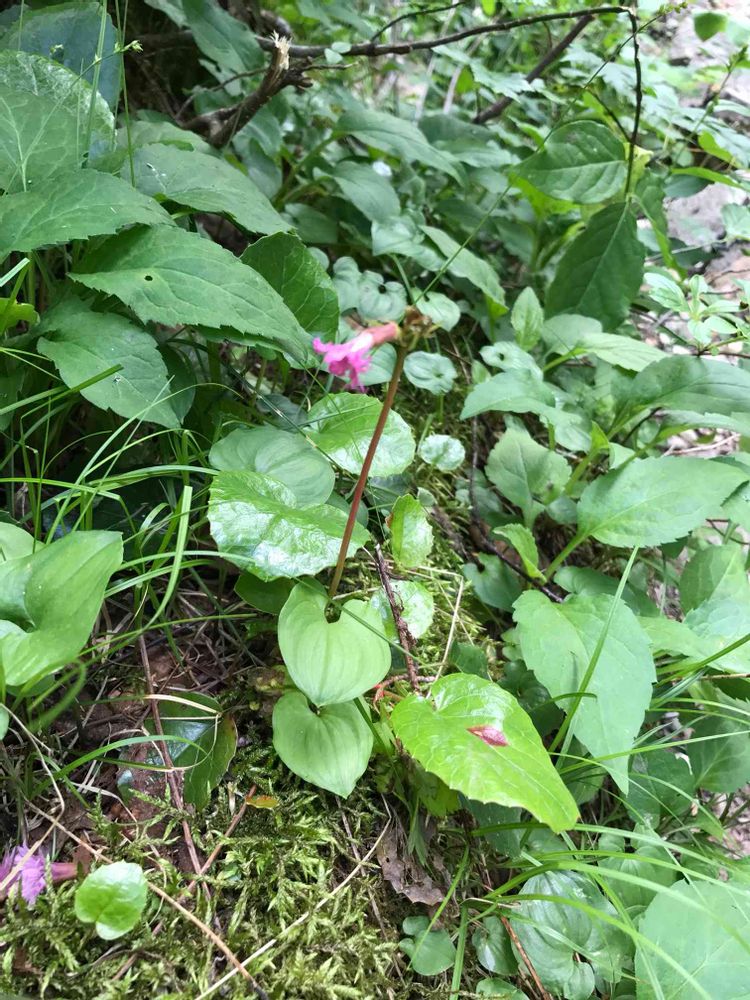 マイズルソウらしき植物の葉に隠れて、イワカガミ?の葉が見えにくいですが、chibiさんがご指摘の通りイワカガミで良いと思います👍