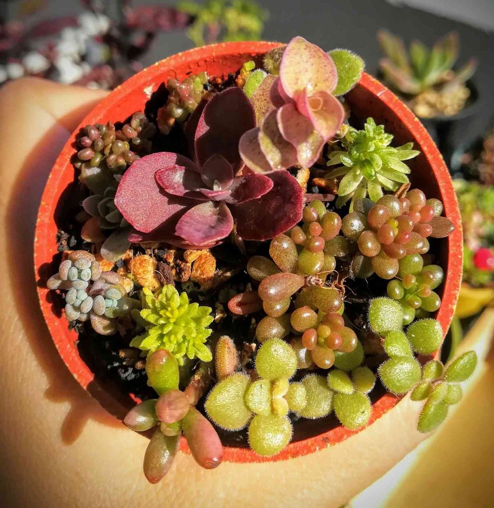 メルカリ多肉たちは自力で名前を調べるのも楽しみなのですが、左上のりっぱな赤い子がいまだわからず…🤔