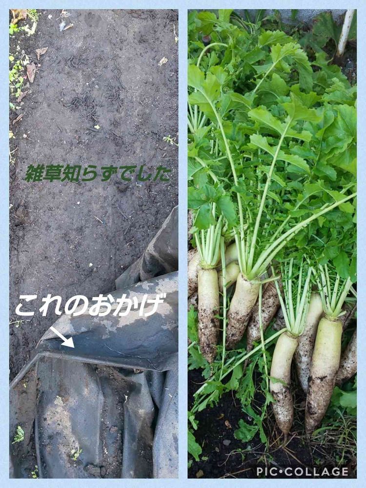 裏の畑は、じゃがいも、人参🥕大根を栽培しましたが、裏の畑は、なかなか行かない😅…ので、雑草が〰️😱だったので、途中から太陽☀️の光を遮断してくれる黒いマルチシートを通路に敷き詰めた所、すごく優秀✨