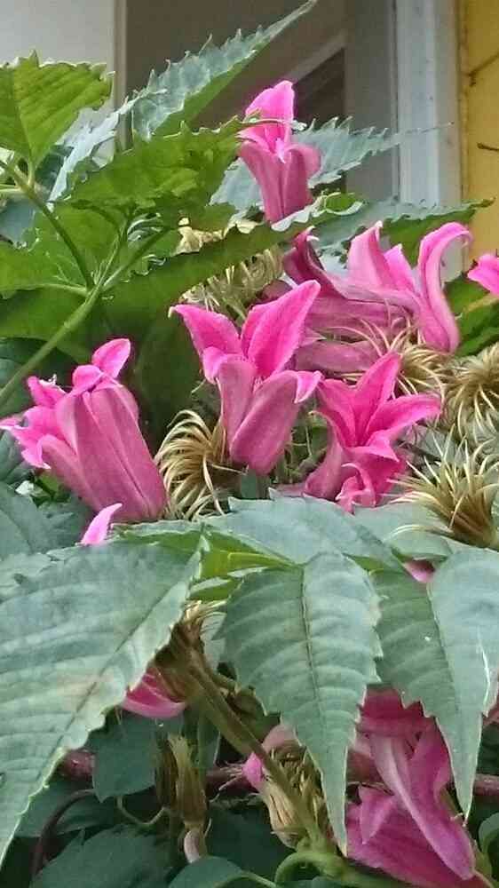 ノウゼンカズラに絡み付きながら上の方で。背伸びでやっと❗
