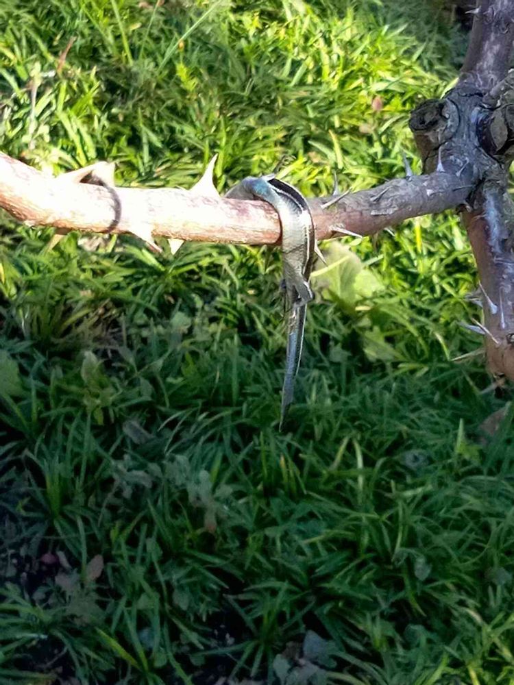 百舌鳥の早贄という言葉は知っていましたが、リアル画像を見る事が無かった私。