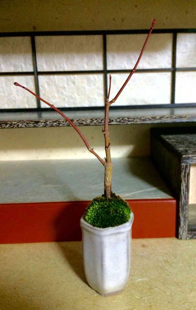 芽吹きまではまだ先なので、今日はお気に入りの和モダンケースに入れて、この樹形もありだな、、って楽しんでおります(´◡`๑)