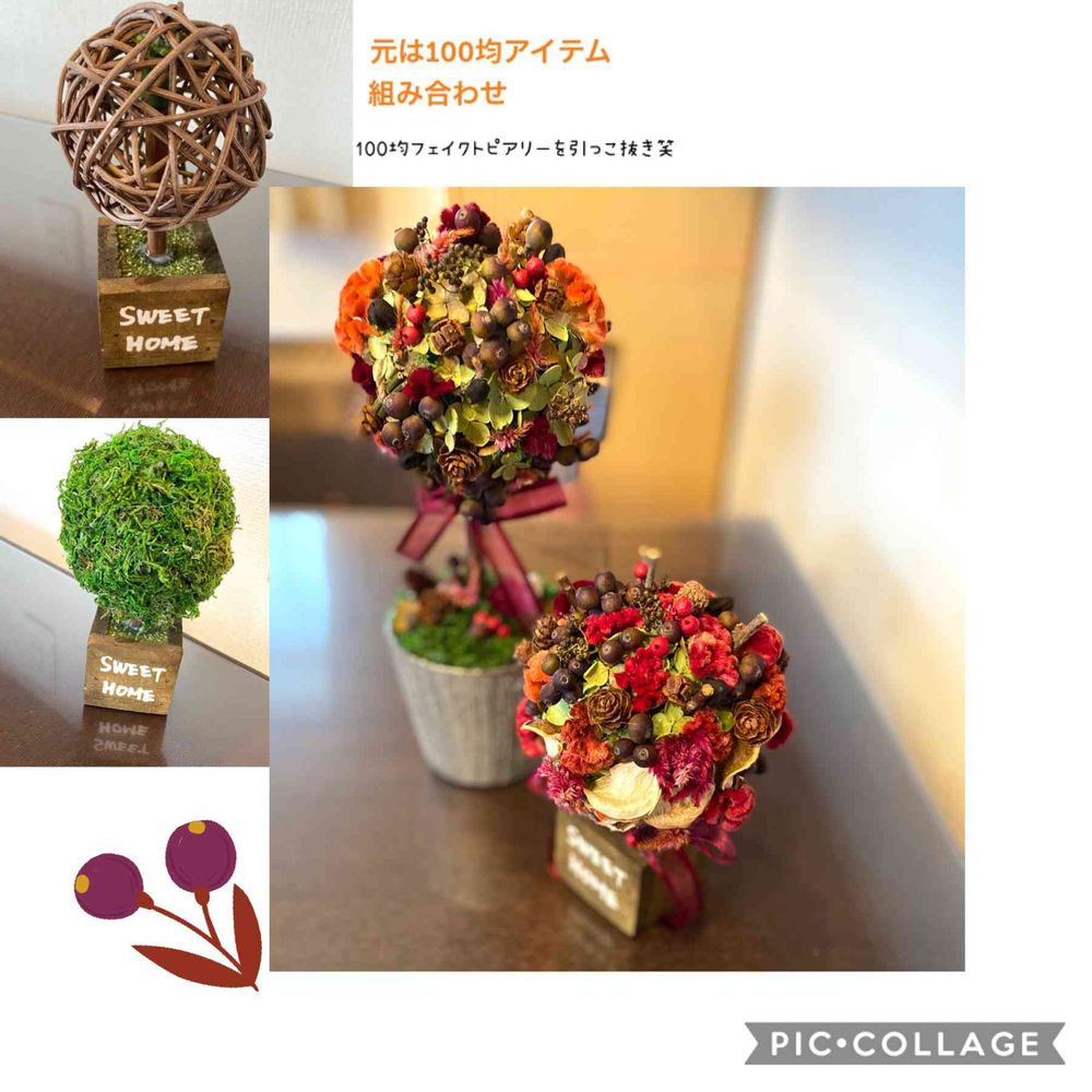 そうなんですよ〜最近の100均アイテムはすごいですねぇ👀フェイクトピアリー部分を引っこ抜いて更に100均丸リースを差し込んで😆作ってみましたぁ🍁🌼