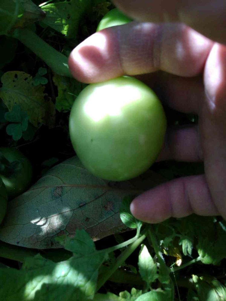 青トマト、どうしようかと畑に行ってはトマトの匂いを嗅いで、いたので、助かっちゃった❤️同僚に一株づつ、あげたのですが彼女のトマトはプランター栽培だったらしく、実は10粒位らしいです。