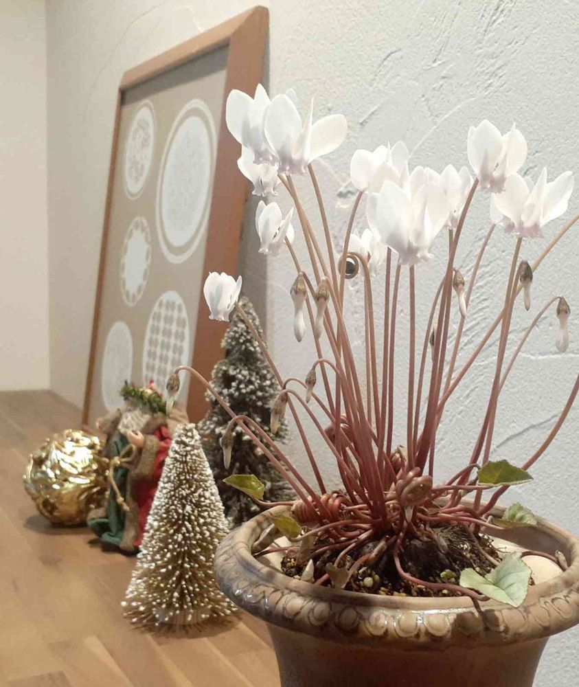 白のシクラメンが好きで、お気に入りの子です♡でも、白だけでなく、深い赤色のシクラメンにも惹かれます♡