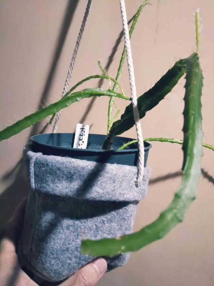 ドラゴン🐲フルーツ、MUJIのハンガーに鉢をぶっこんでみたけど、sizeぎりだった件......( ´,_ゝ`)