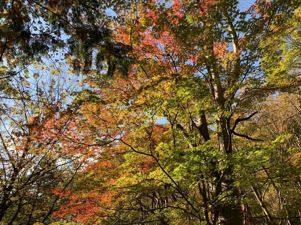 付知峡の紅葉、黄緑から赤までのグラデーションがとても綺麗でした😄